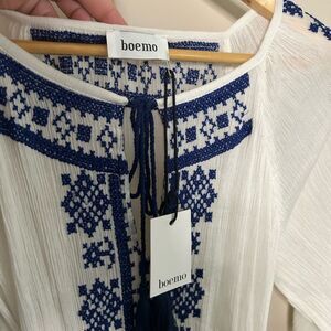 Anthropologie x Boemo Embroidered White Gauze Mini Dress Size Small