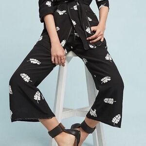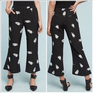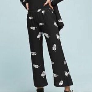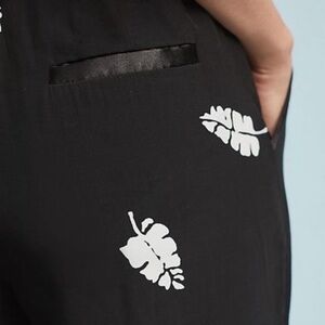 Stylish black pants with a chic white leaf print. Perfect for casual outings or a relaxed office look.