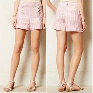 Anthropologie x Cartonnier Women's Pink Beige Linen Striped Sailor Shorts Retro