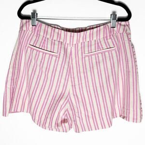 Anthropologie x Cartonnier Women's Pink Beige Linen Striped Sailor Shorts Cottagecore Barbicore Coastal Summer Retro Beach