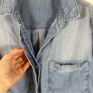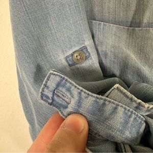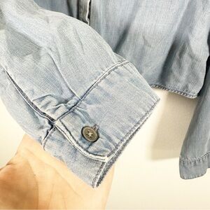 Anthropologie x Cloth & Stone Chambray Button Down Cropped Tie Roll Tab Shirt