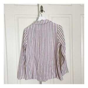 new with tags off white / dark pink Anna Striped Linen Cotton Blazer from DOLAN for Anthropologie. double breasted, unlined, pockets.