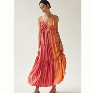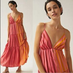 Anthropologie x Farm Rio Deep-V Mixed-Stripe Maxi Dress Size XS/P