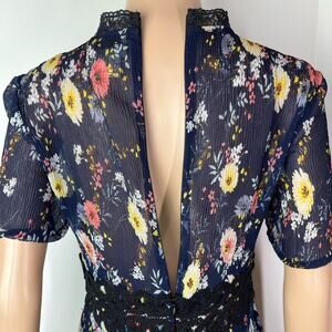 ITEM: Anthropologie Foxiedox Andora Floral Sheer Mini Dress - back zipper closure, sheer back and sleeves, high neckline, floral print, fully lined