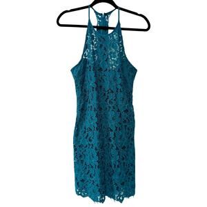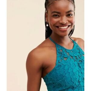 Anthropologie x Hutch S Lace Halter Racerback Mini Dress Fit & Flare Teal Blue
