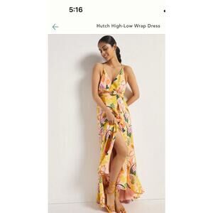 Anthropologie x Hutch Yellow Floral Hi-Lo Chiffon Maxi Wrap Dress Size Small EUC