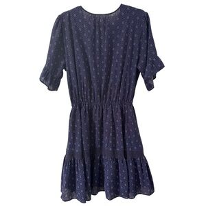 Anthropologie Isabella Sinclair Bandera Ruffled Tunic Dress Navy Blue Size M
