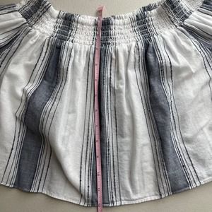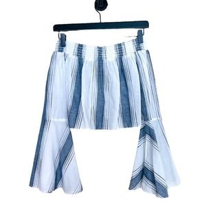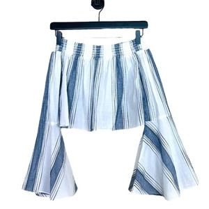 Anthropologie x Lilka Off the Shoulder Top Womens XS Blue White Bell Sleeve