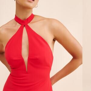 Anthropologie x Liv Foster Halter Gown Open Back Cocktail Dress Red Size 2