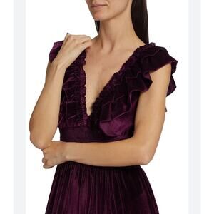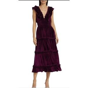 Anthropologie x Love the Label Azalea Velvet Ruffle Tiered Midi Dress Size XS
