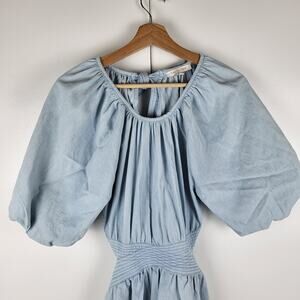 Anthropologie Love the Label Powder Blue Puff Sleeve Palestine Open Back Mini Dress | Size Extra Small