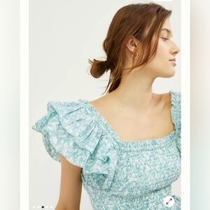 Anthropologie x Love the Label Smocked Ruffle Crop Top size XS