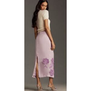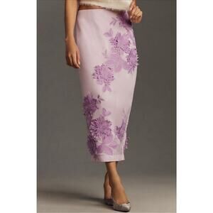 Anthropologie x Maeve 3D Bloom Column Lavender Organza MIDI Pencil Skirt Size 8