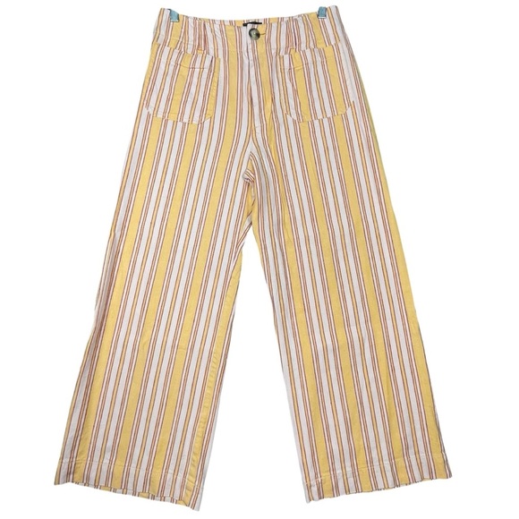 Anthropologie x Maeve Colette Striped Linen Blend Cropped Wide Leg Pants - Sz 28