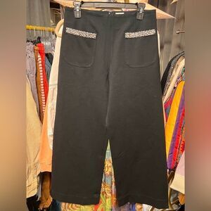 Anthropologie x Maeve Colette Rhinestone Pocket Cropped Ponte Wide Leg Pants