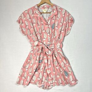 Anthropologie x Maeve Tourista Sailboat Romper Pink Size 4 Nautical Short Sleeve