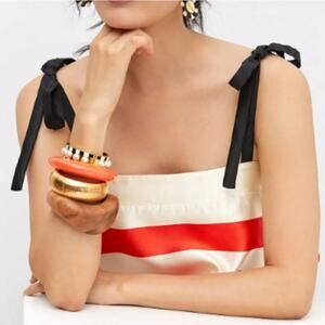 Striped in nautical hues, this mini dress features a layered bodice and tie straps for a sweetly feminine touch. Complete the look with a tonal headband and pearl earrings for a dash of Audrey Hepburn-inspired sophistication.