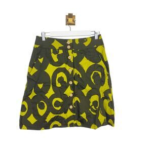 Step out in style with this eye-catching Anthropologie x Marimekko A-line skirt! The vibrant green abstract pattern is sure to turn heads, and the convenient front pockets add a touch of practicality. Perfect for adding a pop of color to your wardrobe.