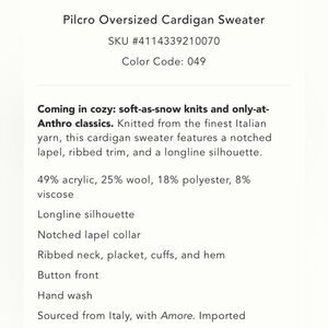 Anthropologie x Pilcro Oversized Cardigan Sweater Size Small NWT