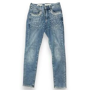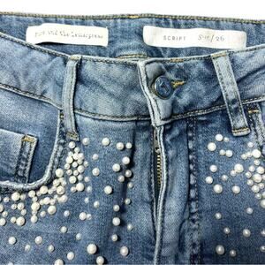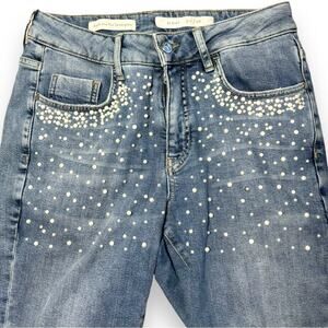 Anthropologie x Pilcro Script Faux Pearl Embellished Blue Denim Skinny Jeans