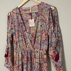 Anthropologie x Raga Colorful Foil Shimmer Slit Sleeve Mini Dress Size Small