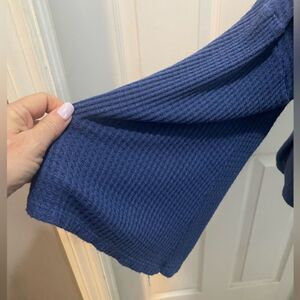 Blue waffle knit Cardigan (stock photo is different color) actual color is blue)