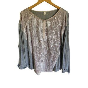 Anthropologie x TINY Pink Gray Sequin Embroidered Top Boho Bohemian Metallic Sparkly Fairy Lightweight Dolman Sleeve Bling