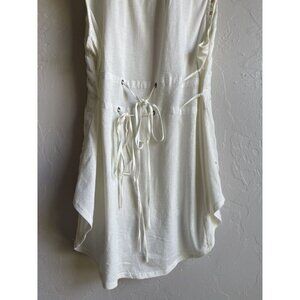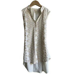 Anthropologie x TINY White Tan Embroidered Tie Waist Sleeveless Tunic Top Size X