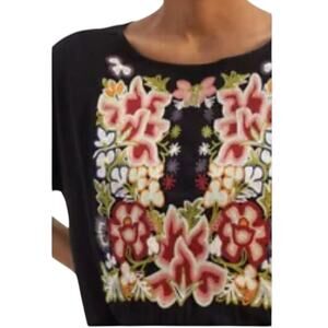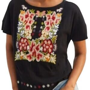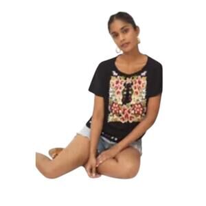 Tiny x Anthropologie Vibrantly Embroidered Black SS Tee, Festival, S
