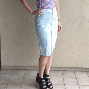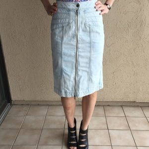 This denim skirt from Anthropologie is brand new with tags and has a double zipper, so you can unzip it from the bottom to create a slit.
