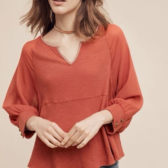 Anthropologie Akemi + Kin Fenn Dolman Top blouse burnt orange size S oversized