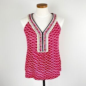 This tank top is in excellent condition. Featured with boho style neckline including unique yarn and knit patterns. Red & pink in color and size small. Made from linen and cotton. Please send any offers or questions!