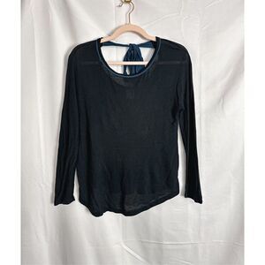 Anthropologie Akemi + Kin Top || navy with beautiful blue embroidery on the open back || size xs || thin and lightweight || excellent condition with minimal wear ||
