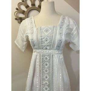 Anthropologie Alene Embroidered Lace Midi Dress White XS/O