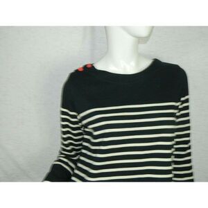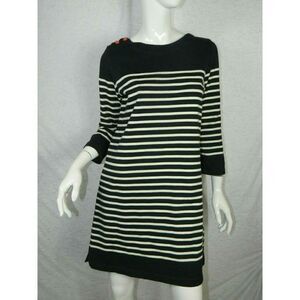 Anthropologie Allihop Dress Blue and White Striped Red Button Details Size Small