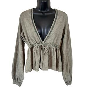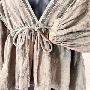 Anthropologie Anama Boho Khaki Banded Waist Blouse