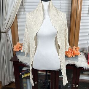 Women’s Anthropologie Angel of The North Cream Open Weave Nysa Shawl Cardigan.
