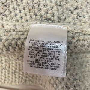 Oatmeal toned sweater with back rayon panel and buckle detailing.