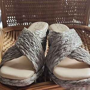 Super cute 'Bondi' Anthropologie BEACH by Matisse, silver Grey Raffia criss cross upper wedge heel
