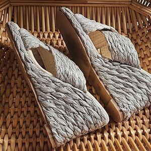 Anthropologie BEACH by Matisse Silver Grey Raffia Wedge Heel Size 6M