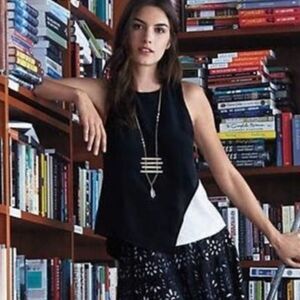 BORDEAUX Anthropologie Black Orlana Split Tone Black White Tank Top Small