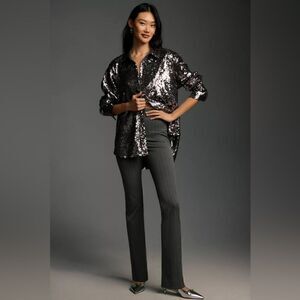 Woven fabrication; slight stretch. Zip up. High waisted. Side zip opening on hem pants.