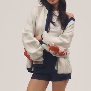 Anthropologie Bel Kazan Striped Lobster Open Front Cardigan NWOT