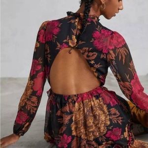 Anthropologie Black Motif Open Back Floral Chiffon Dress size L NWOT