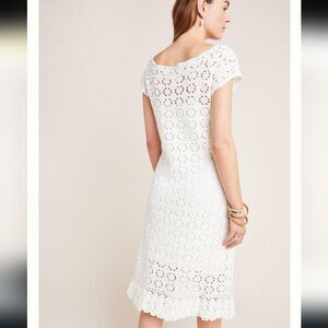 A classic, streamlined silhouette lets the exquisite crochet detailing of this dress shine.