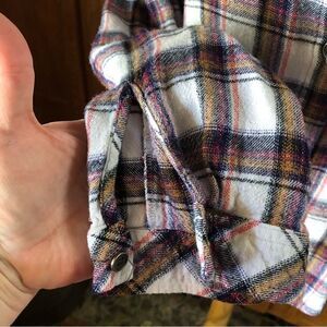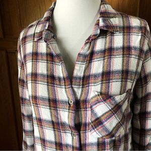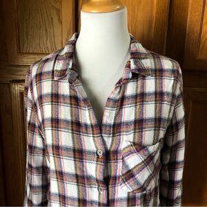 Anthropologie Cloth & Stone Blue Plaid Button Metallic Flannel Top - L
