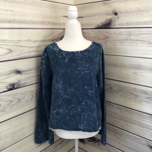 Anthropologie Cloth & Stone Denim Look Bell Sleeve Button Cutout Top Small