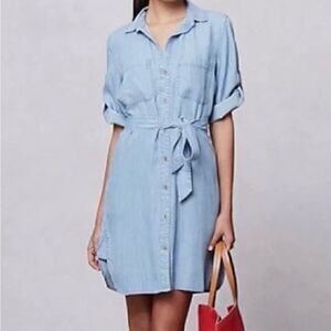 Anthropologie Cloth & Stone dress || button down with front tie || pale blue || size medium || excellent condition with no signs of wear ||