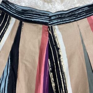 In excellent condition. No stains, tears, or flaws. Pleated skirt. Features multicolor artistic vertical stripe design. Back zip up. Beautiful statement piece.
