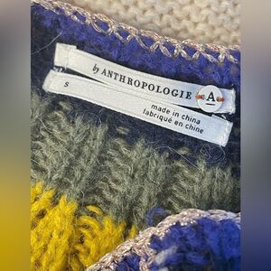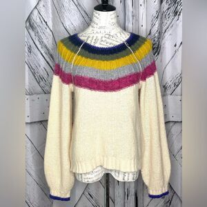 Anthropologie Cream Pullover Sweater Striped Trim Size M